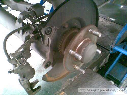 頂起車輛轉動右後輪,可以感覺到軸承的聲音與振動.....
